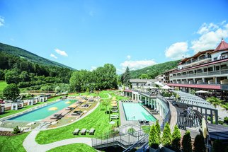 Im Hotel befindet sich eine Wohlfühloase mit einem Erlebnis-Hallenbad, einem Türkischen Dampfbad, rustikaler Baumsauna, Kräutersauna, Whirlpool, Relaxarium und Sonnenbank.